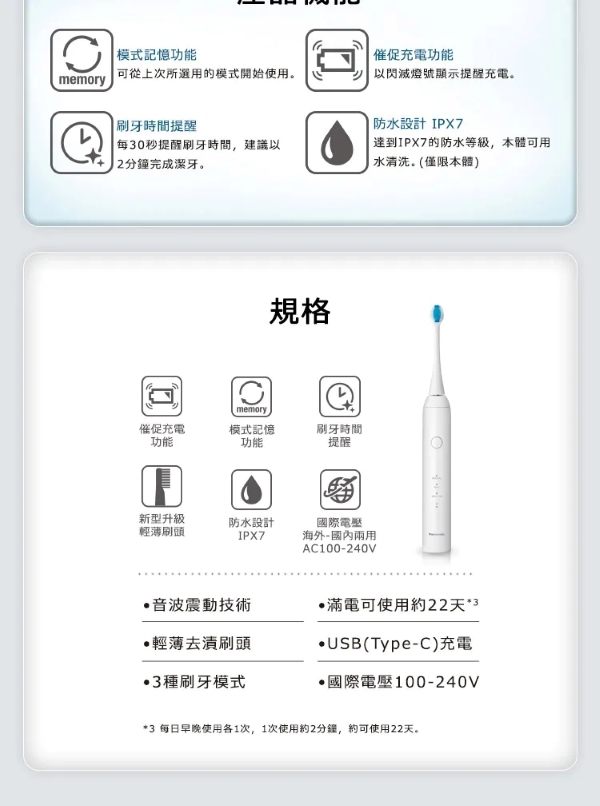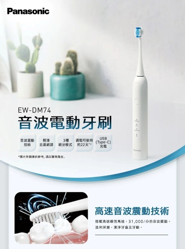 Panasonic 國際牌 音波震動國際電壓充電型電動牙刷 EW-DM74