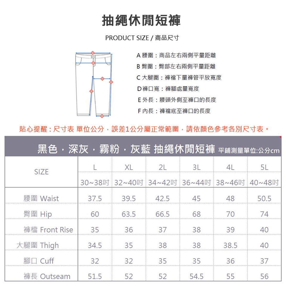 💬不同褲款版型稍有不同,下單前務必各別參考尺寸表,誤差1~2cm為正常範圍