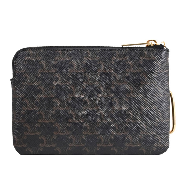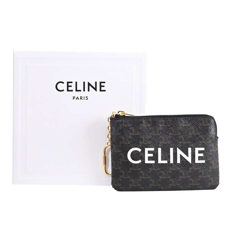CELINE 專櫃熱銷經典TRIOMPHE系列配件,使用經典TRIOMPHE印花皮革打造,拉鍊開口,內有1鑰匙釦環,簡約時尚的拉鍊鑰匙零錢卡包,可放小包好收納,顯出低調奢華的質感,都會時尚感。