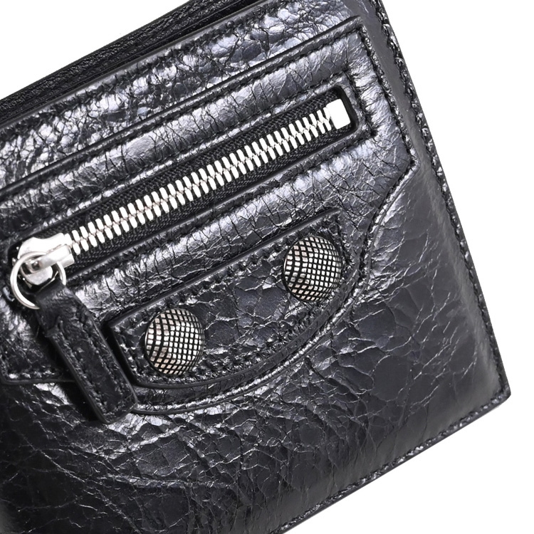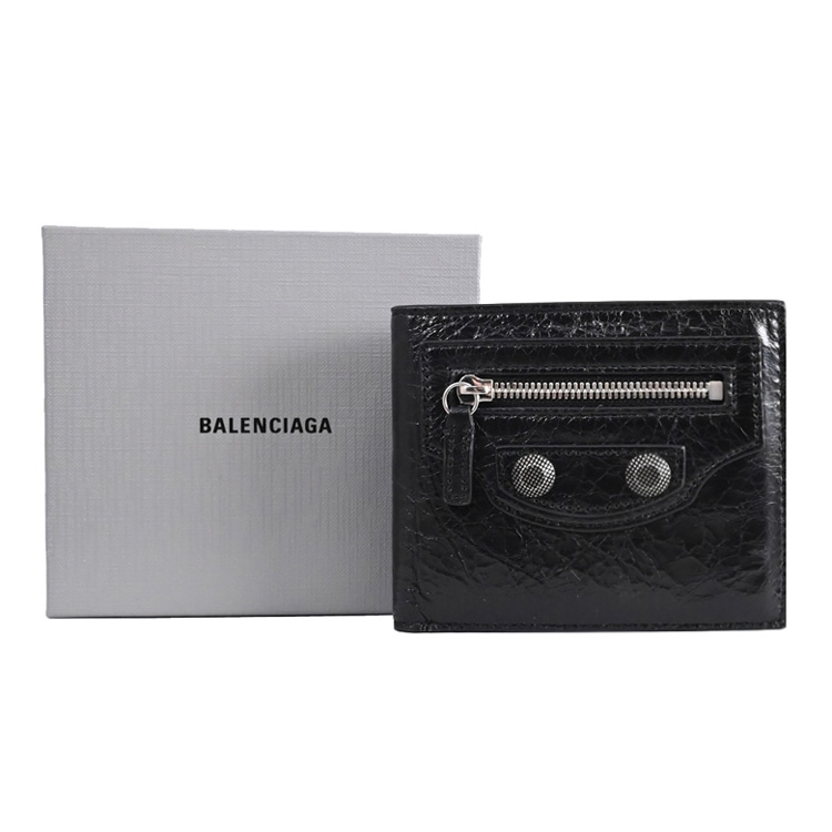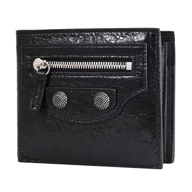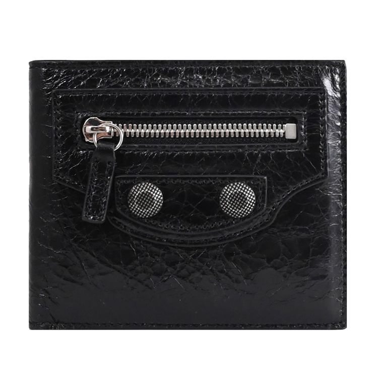 《BALENCIAGA》,深受不少國內外名人青睞的品牌,其魅力在台灣持續燃燒,是許多人踏入名牌世界的第一選擇,熱銷經典款再創新設計,獨特包型設計更顯高貴及優雅,專櫃對開短夾,採用質感小羊皮材質加上品牌鉚釘飾,內有2鈔票夾層+2貼袋+4信用卡夾+1扣式零錢袋供收納,外有1拉鍊袋,可輕易放入各種小包,實用性設計便於攜帶。