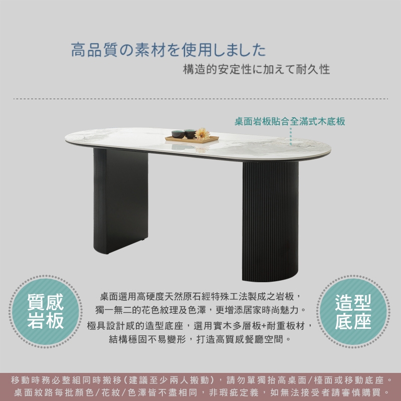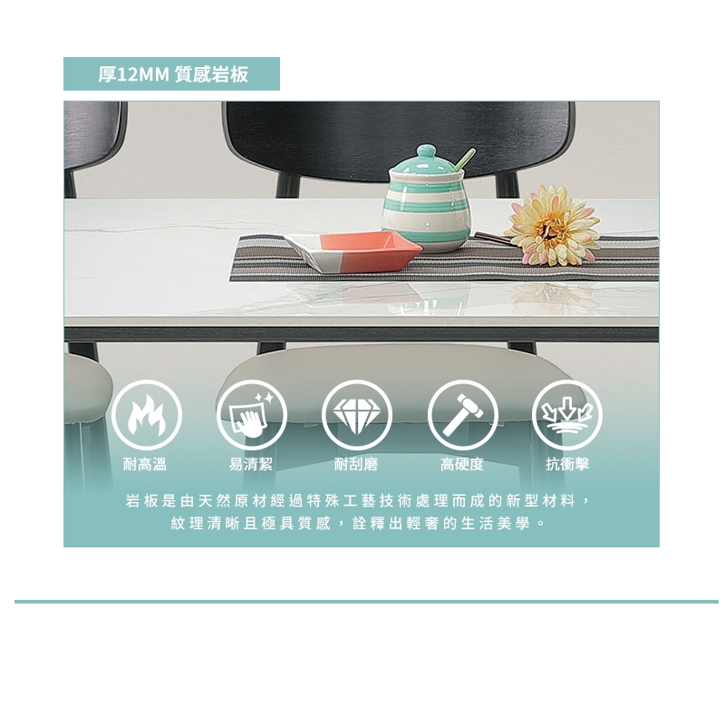 (1)岩板桌面紋路每批顏色/花紋/色澤皆不相同,非瑕疵定義,如無法接受者請審慎購買。
