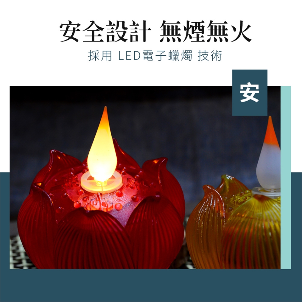 採用 LED電子蠟燭 技術,避免火源危險與煙燻問題,無論寺廟、宮廟或居家佛堂,皆能安心長時間點亮。