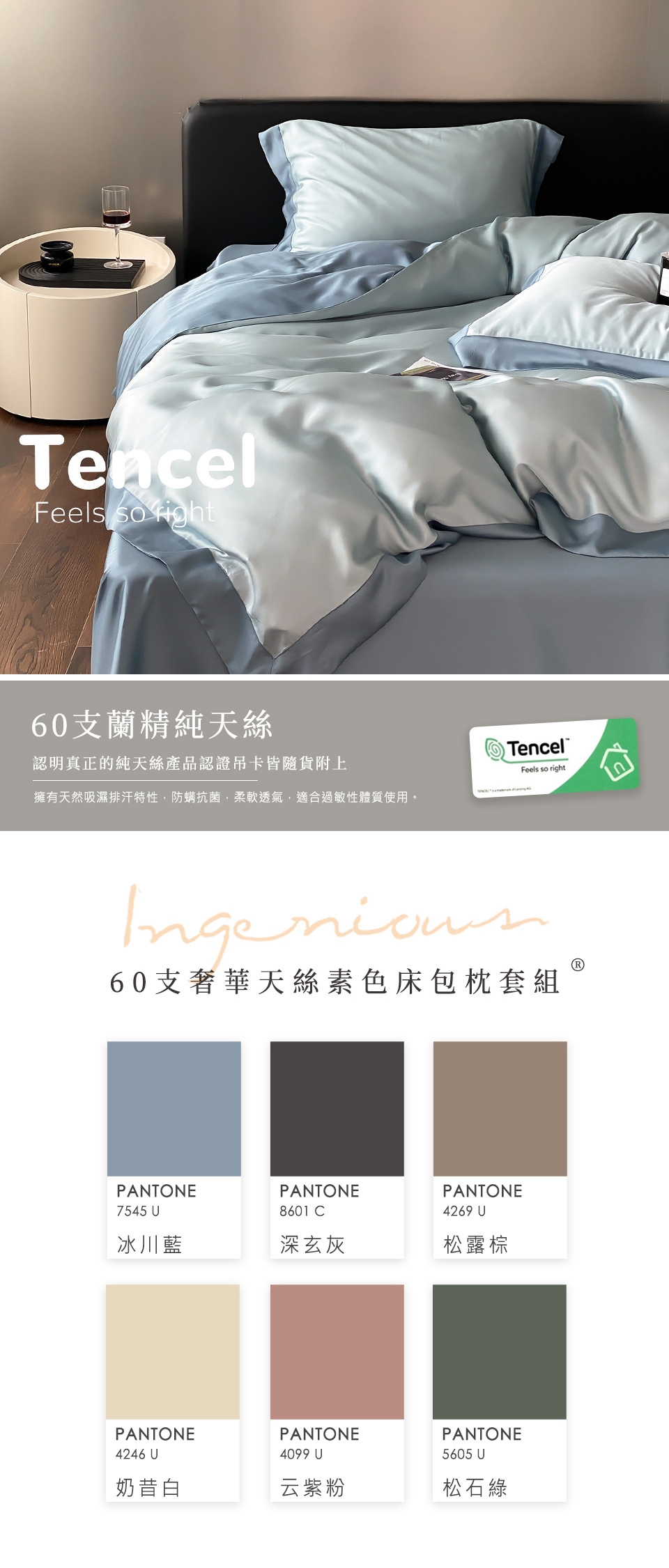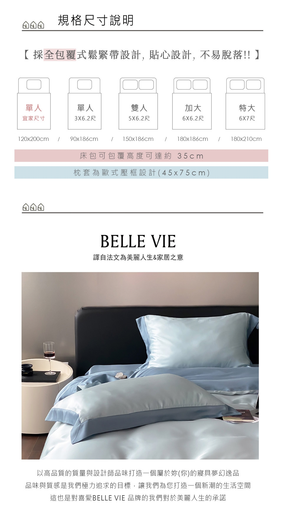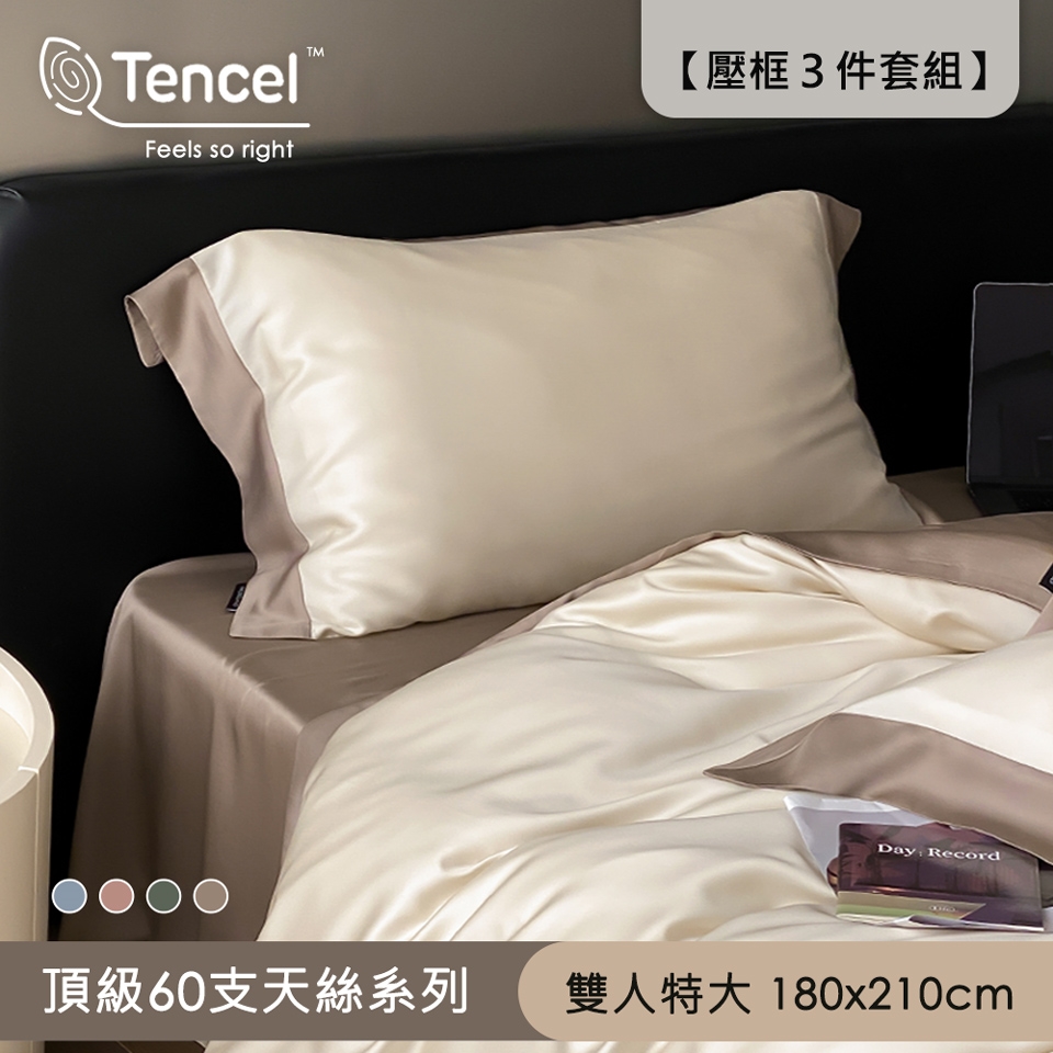 BELLE VIE 60支涼感天絲 法式雙色 雙人特大床包枕套3件組 ( 180X210cm ) 涼爽親膚 多色任選