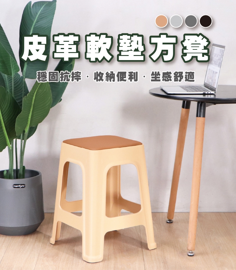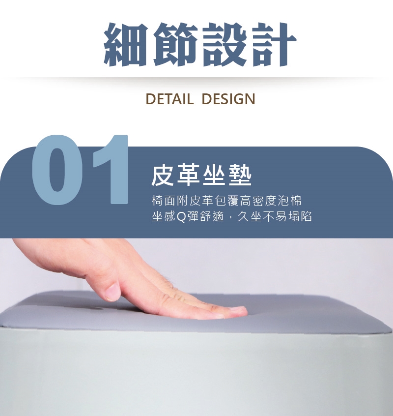 椅面附PU皮革包覆高密度泡棉,坐感Q彈舒適。
