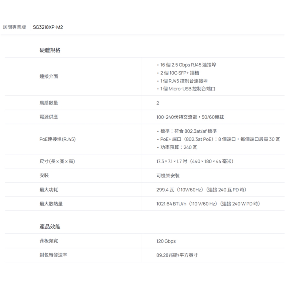 -240 W PoE預算:8個802.3at/ af相容PoE +端口,總供電功率為240 W。