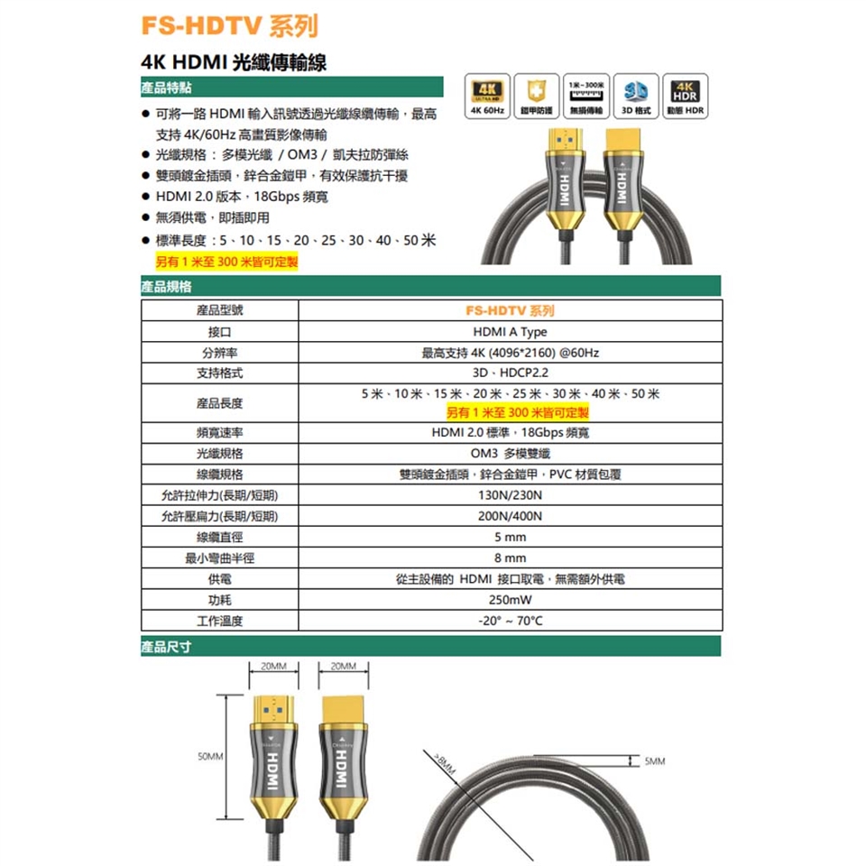 可將一路HDMI輸入訊號透過光纖線纜傳輸,最高 支持4K/60Hz高畫質影像傳輸