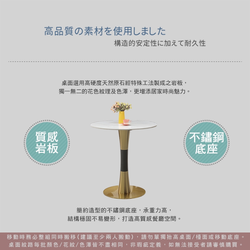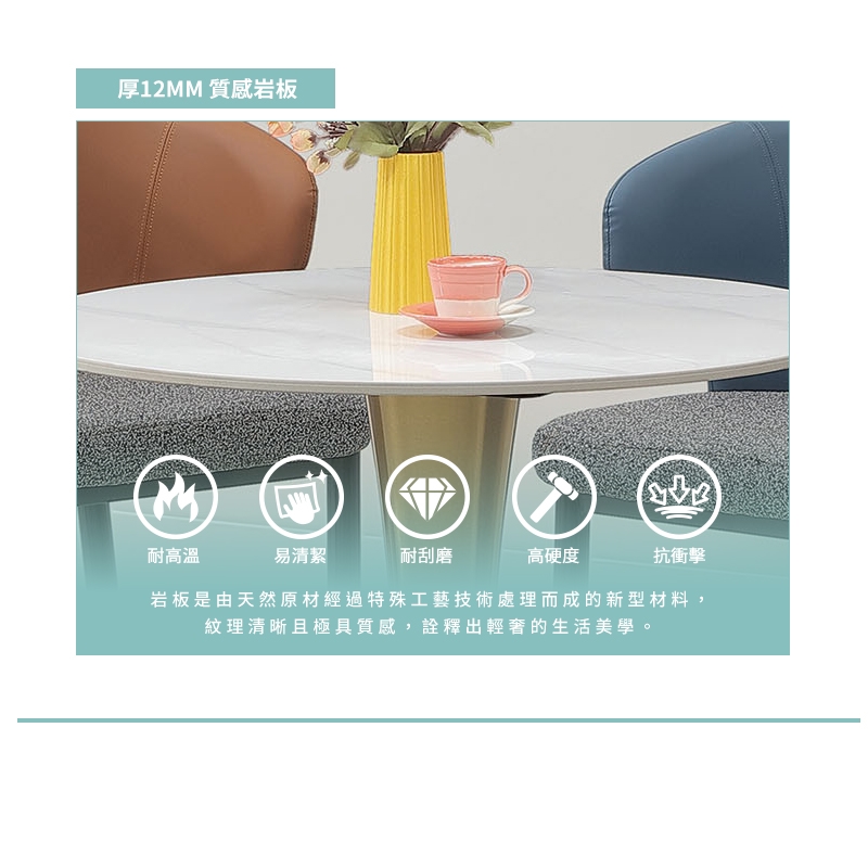 (1)岩板桌面紋路每批顏色/花紋/色澤皆不相同,非瑕疵定義,如無法接受者請審慎購買。