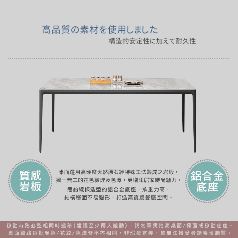 (1)岩板桌面紋路每批顏色/花紋/色澤皆不相同,非瑕疵定義,如無法接受者請審慎購買。