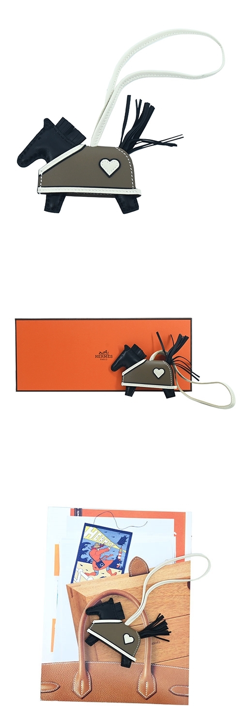 Hermes 愛馬仕 Rodeo Robeo 心形 PM 小羊皮吊飾(黑色/粉筆灰/灰褐色/黑色)