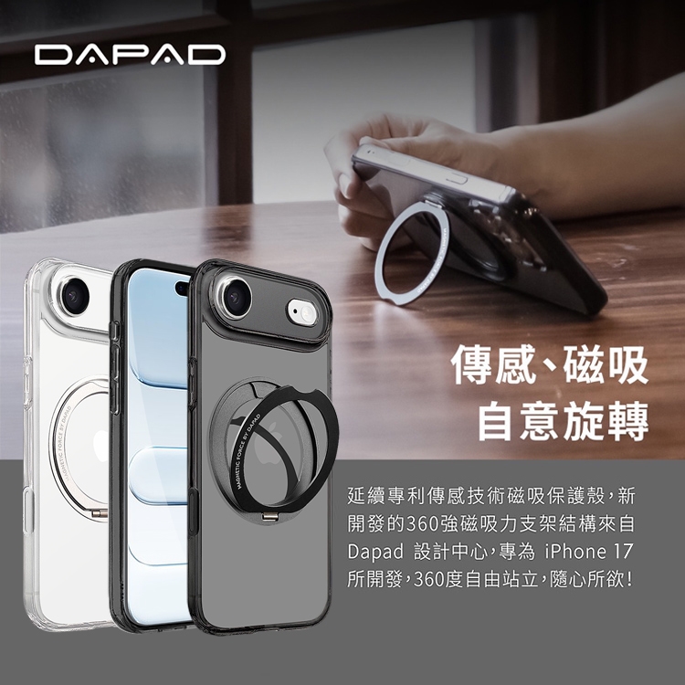DAPAD iPhone 17 6.3 專利傳感技術磁吸360度支架保護殼-附相機電子按鍵