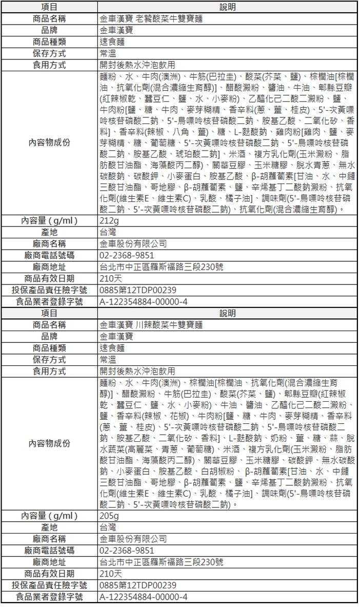 川辣酸菜牛雙寶麵: