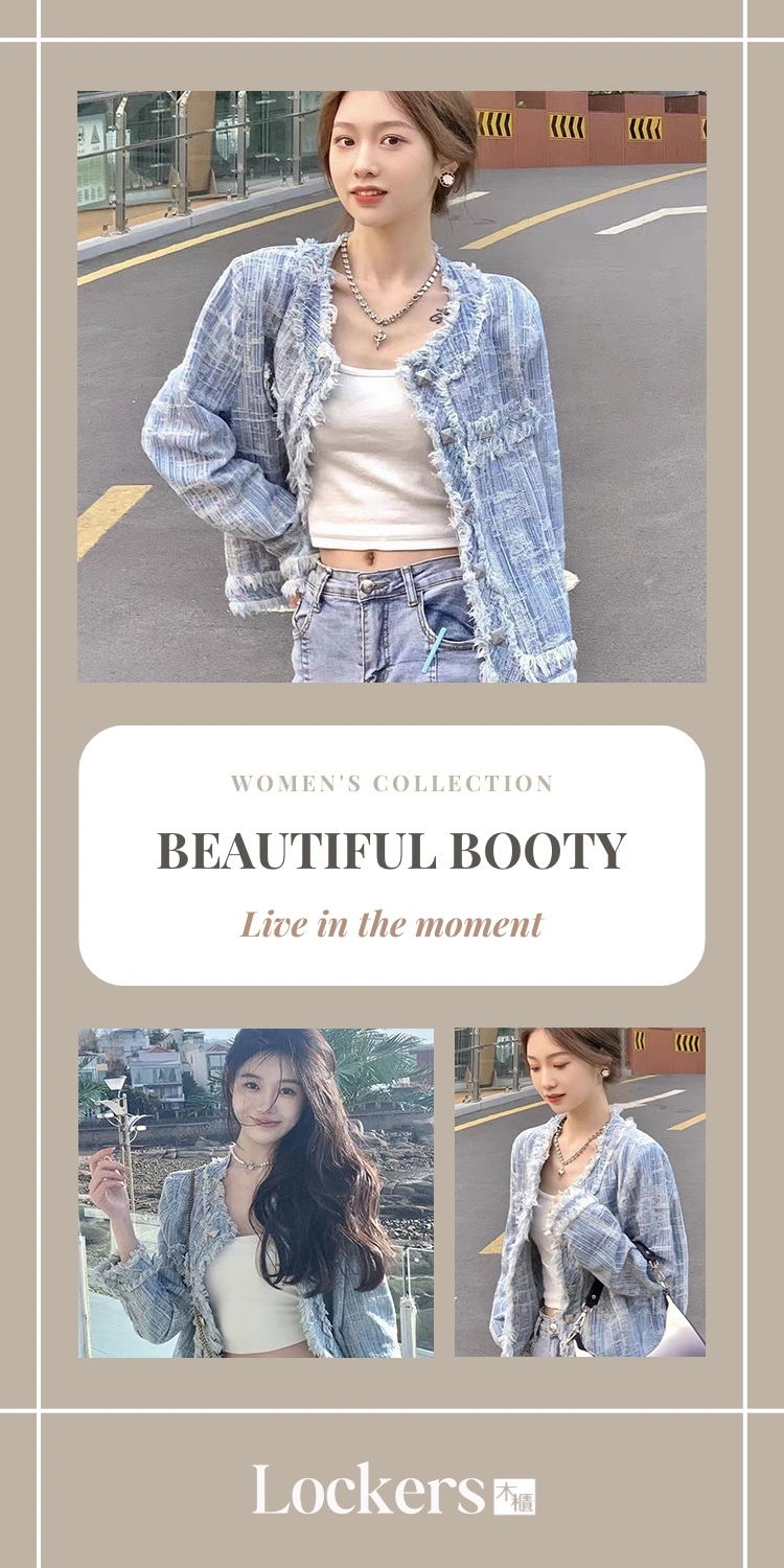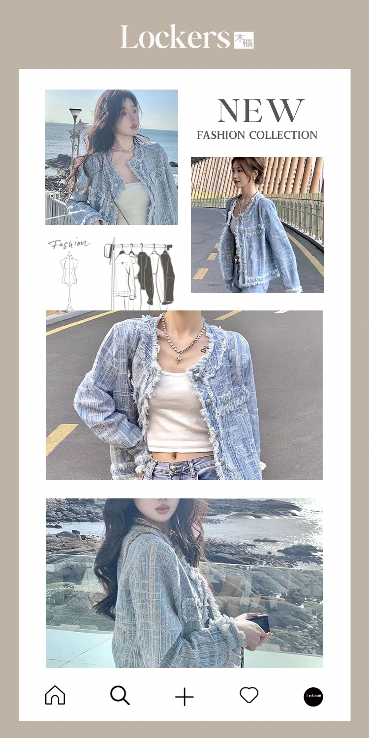 【Lockers 木櫃】丹寧流蘇粗呢短版外套 L114103104