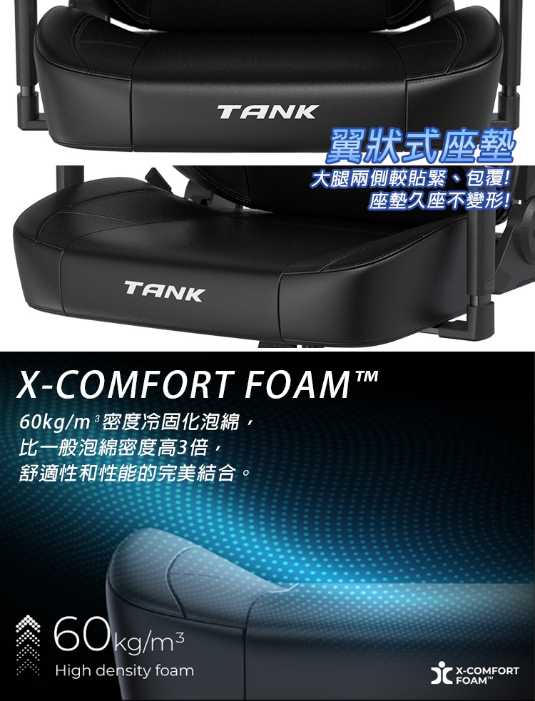 本款為同汽車等級泡棉座墊,使用數年不易鬆垮、不變形),仿賽車滾筒翼狀式包覆感,能貼緊大腿外側!