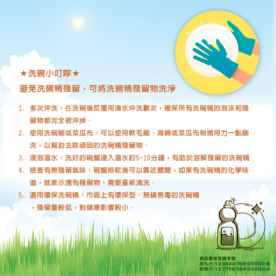取適量於沾濕之海棉或是洗碗槽水中清洗碗盤即可