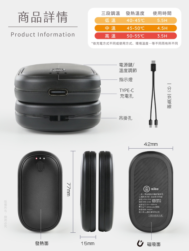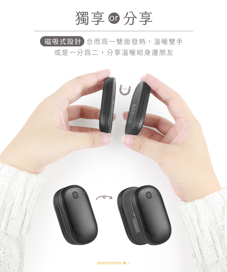 --可分離式磁吸設計,一分為二,讓您的雙手同時擁有溫暖--
