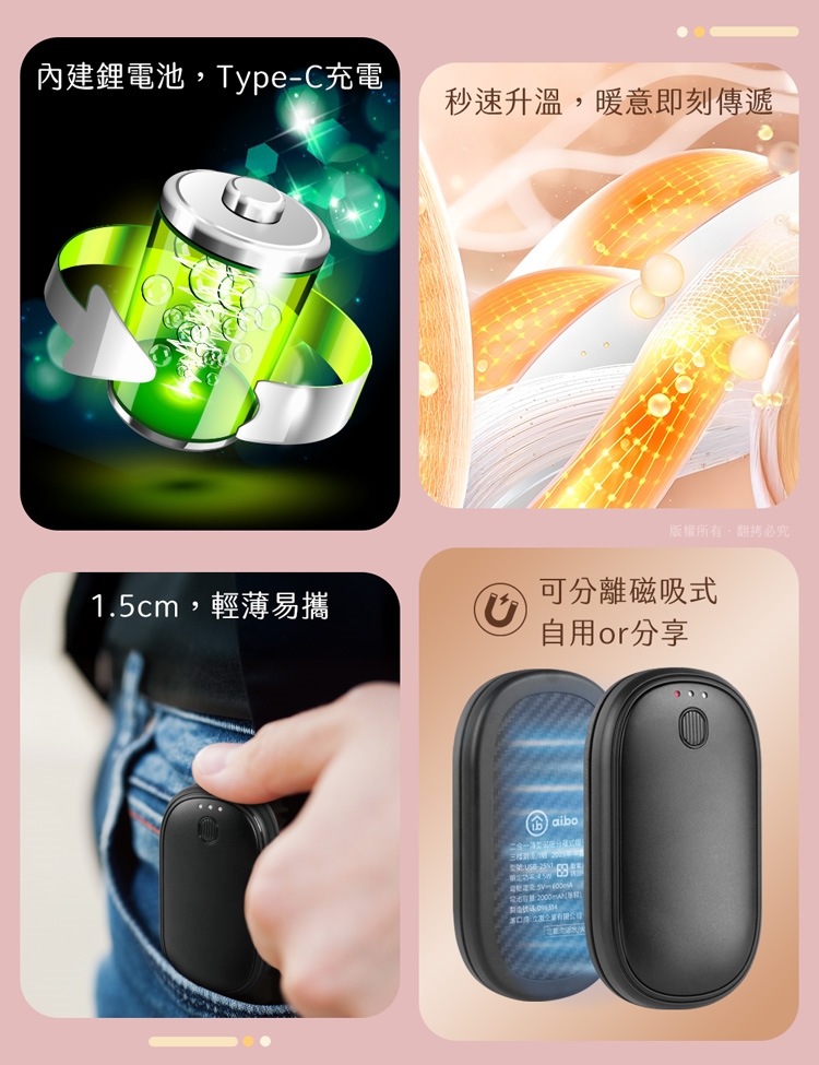 aibo 二合一薄型磁吸分離式暖手寶 (三檔調溫/1組)