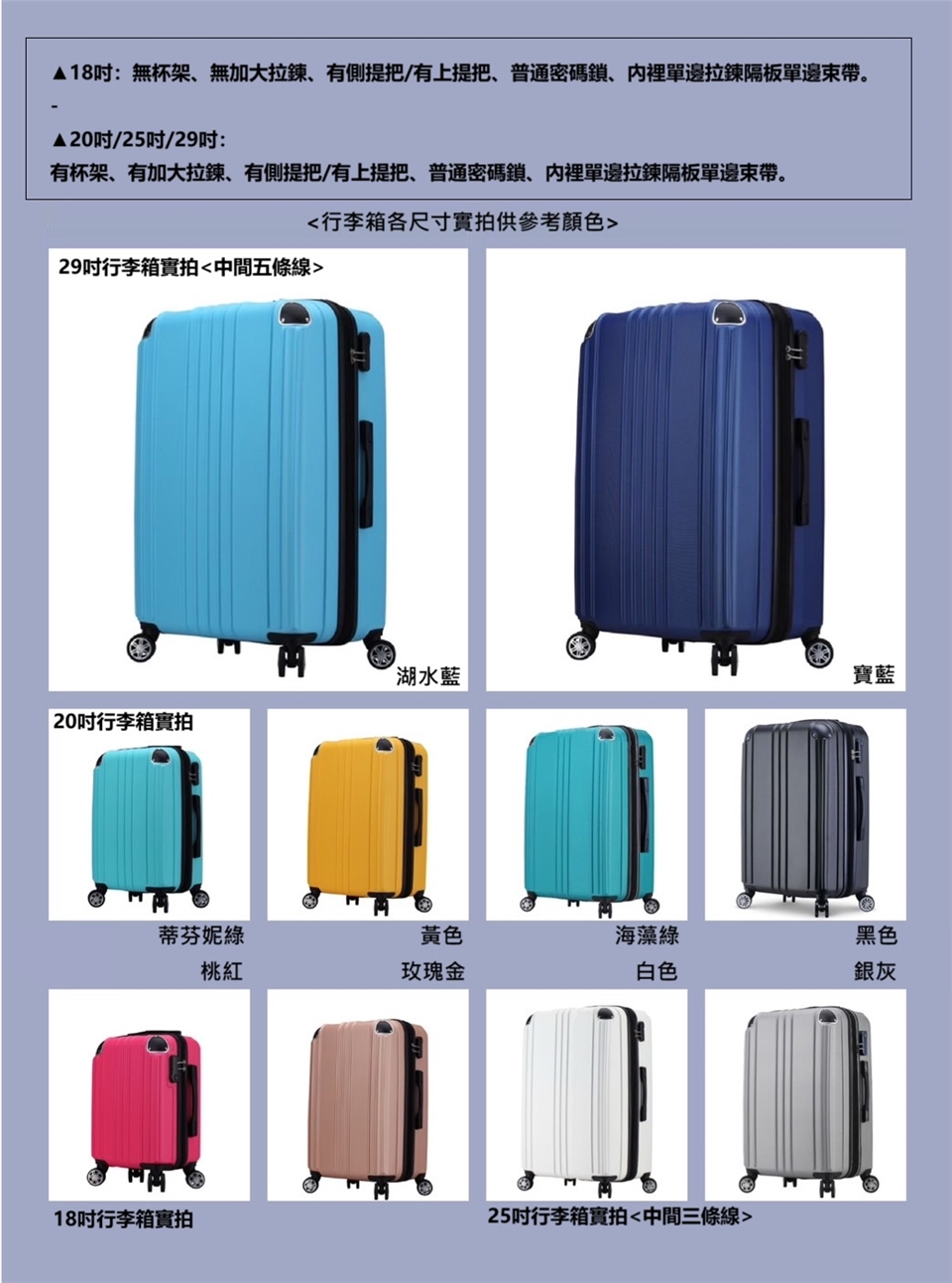 ※ 以上含輪高/不含提把,僅供參考人工測量正負誤差15mm,0.5kg。