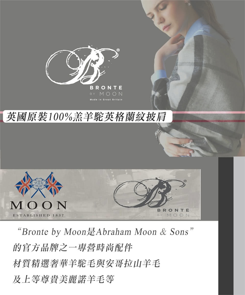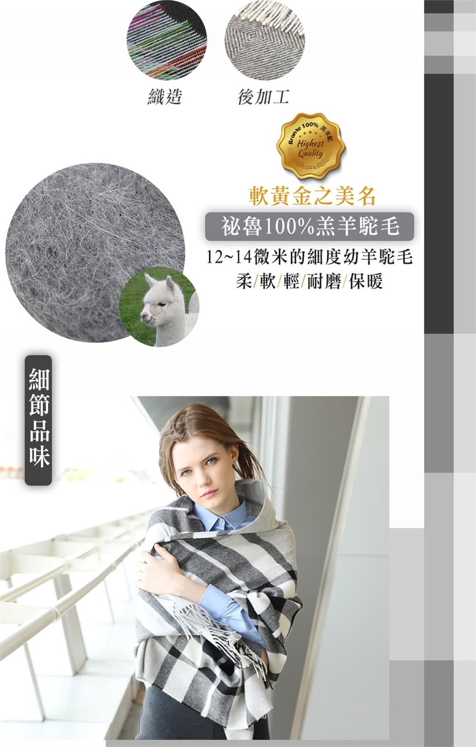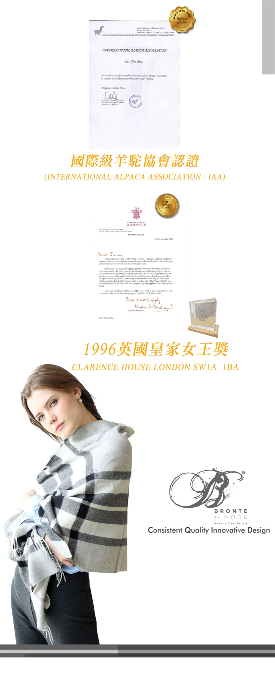 【Bronte】英國原裝格紋100%羔羊駝披肩-1入(大圍巾/保暖圍巾/秋冬圍巾/披肩)