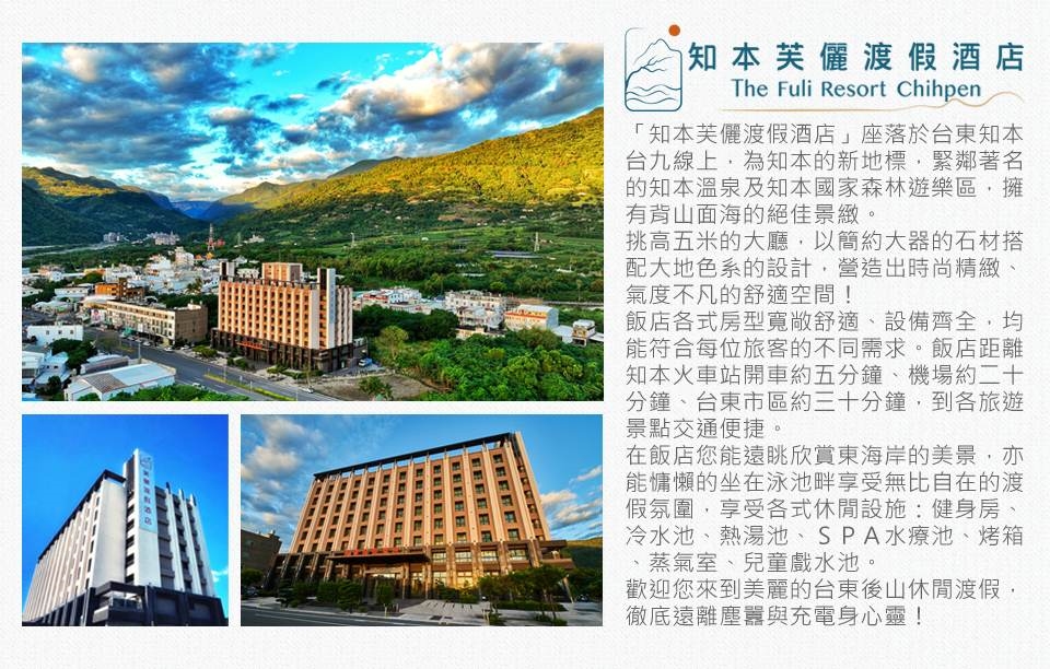‧飛機:台東航空站→轉搭計程車(或)租汽車→知本芙儷渡假酒店。