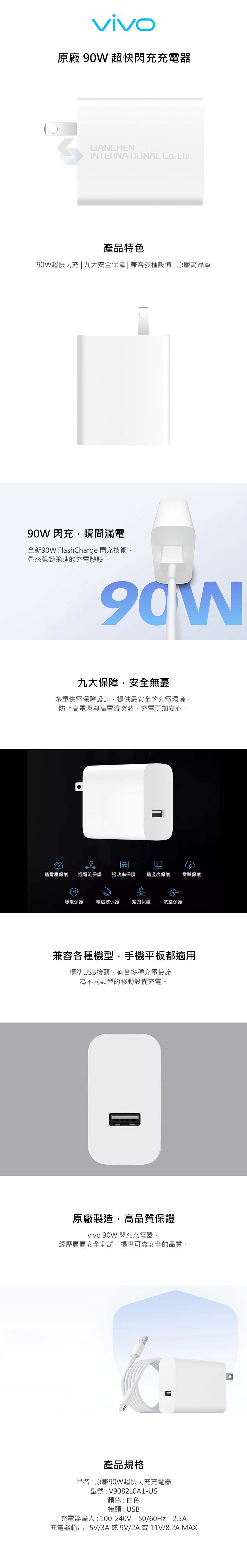 本商品 VIVO 原廠台灣公司貨 90W 極速超快閃充充電器11V/8.2A (盒裝),