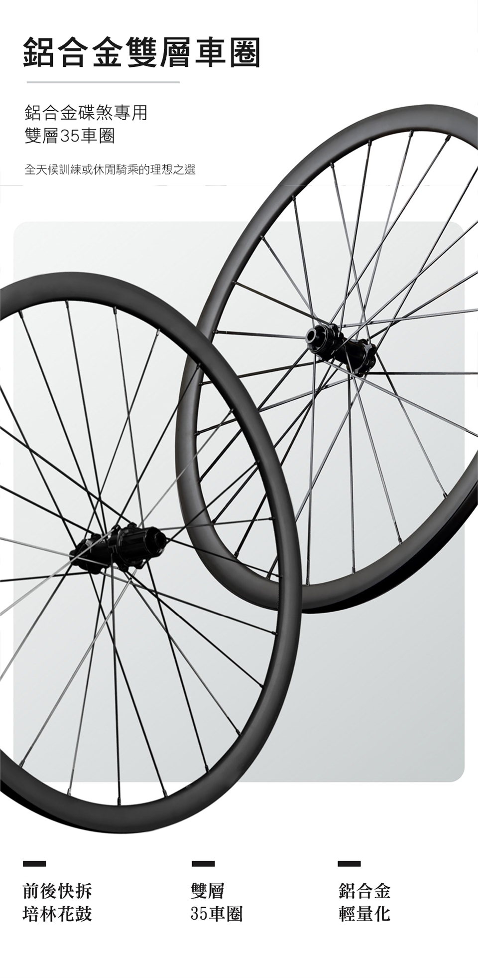 輪組:鋁合金碟煞專用雙層35車圈 700C CNC邊培林花鼓前後快拆