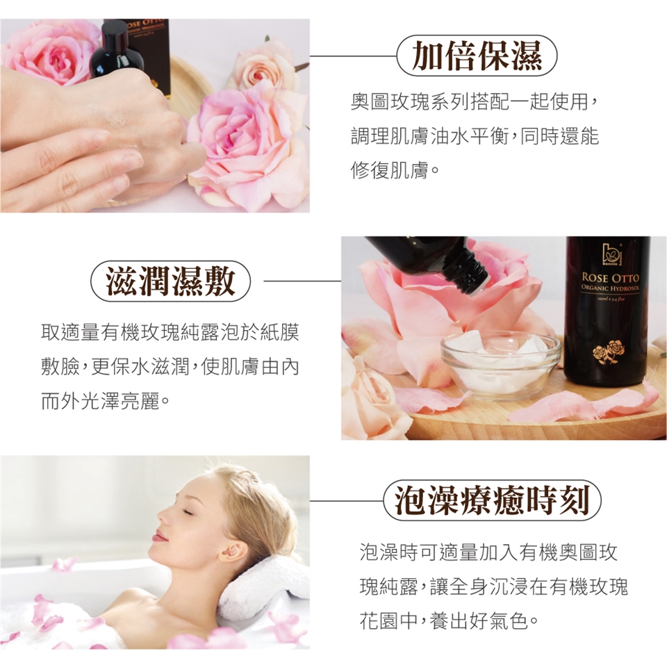 玫瑰純露:可近距離噴灑肌膚,再以手輕拍即可。