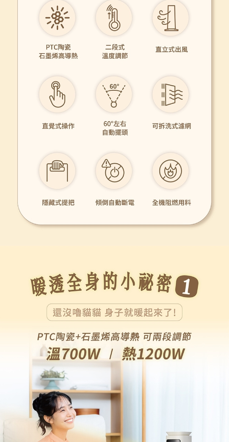 ★ PTC陶瓷+石墨烯高導熱設計,升溫速度快,瞬熱效果佳,安全加熱又均勻