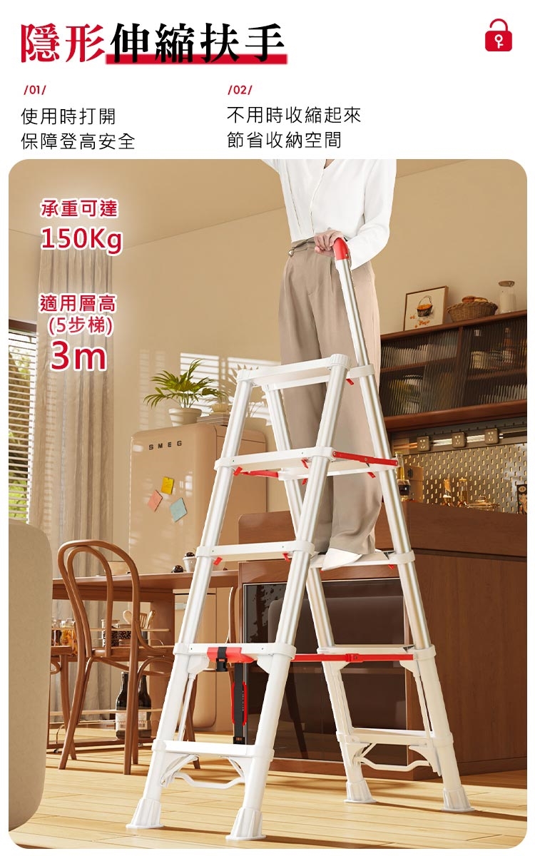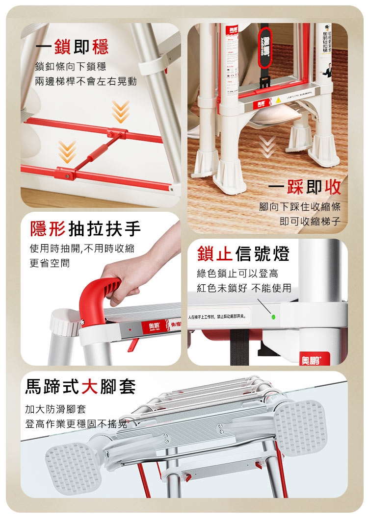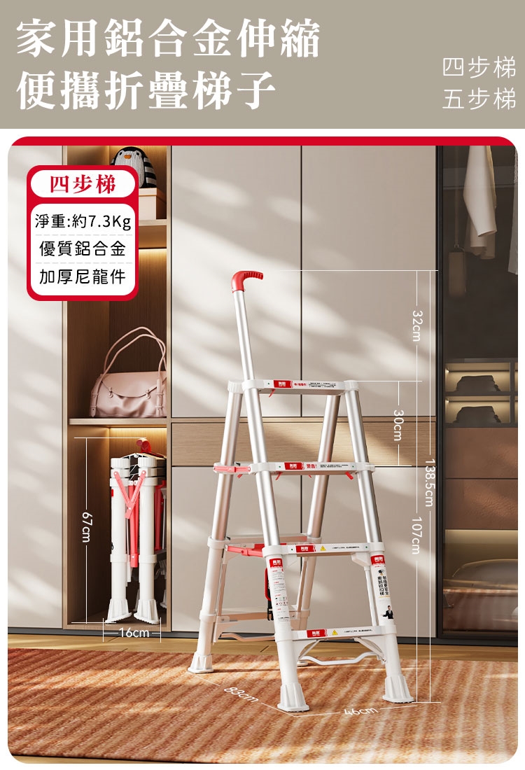 品名:【奧鵬AOPENG】家用鋁合金伸縮四步梯 便攜折疊梯子