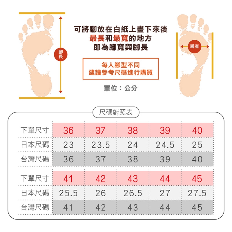 體驗說明:注意事項鑑賞期僅提供尺寸試穿是否合乎腳形及檢查商品有無瑕疵,並請於室內乾淨地板試穿,若商品鞋面、鞋底一經污損磨損或商品已穿外出、下水、吊卡撕毀恕不接受退換貨。