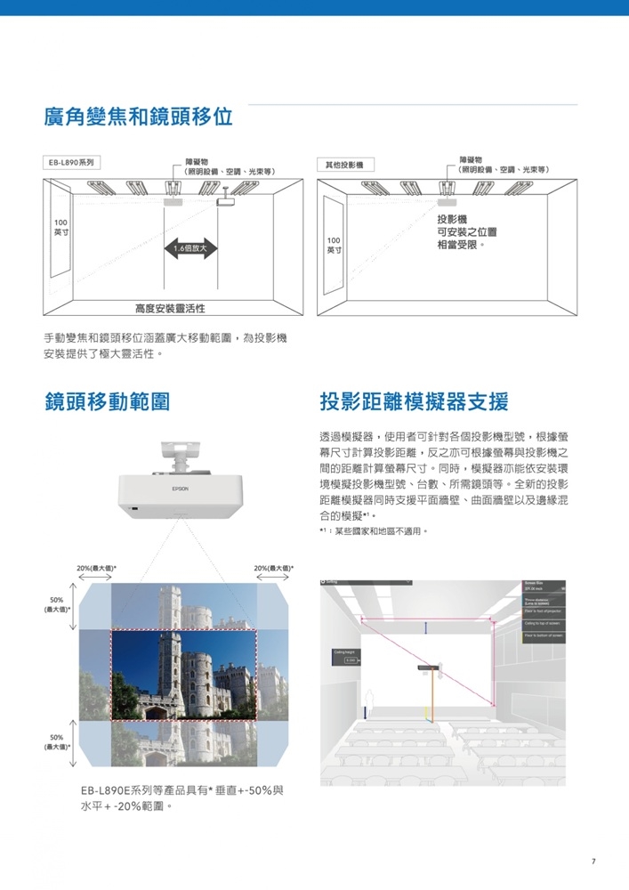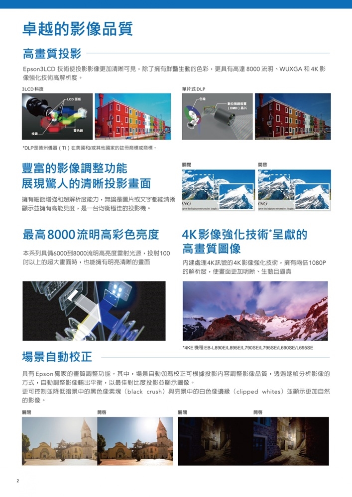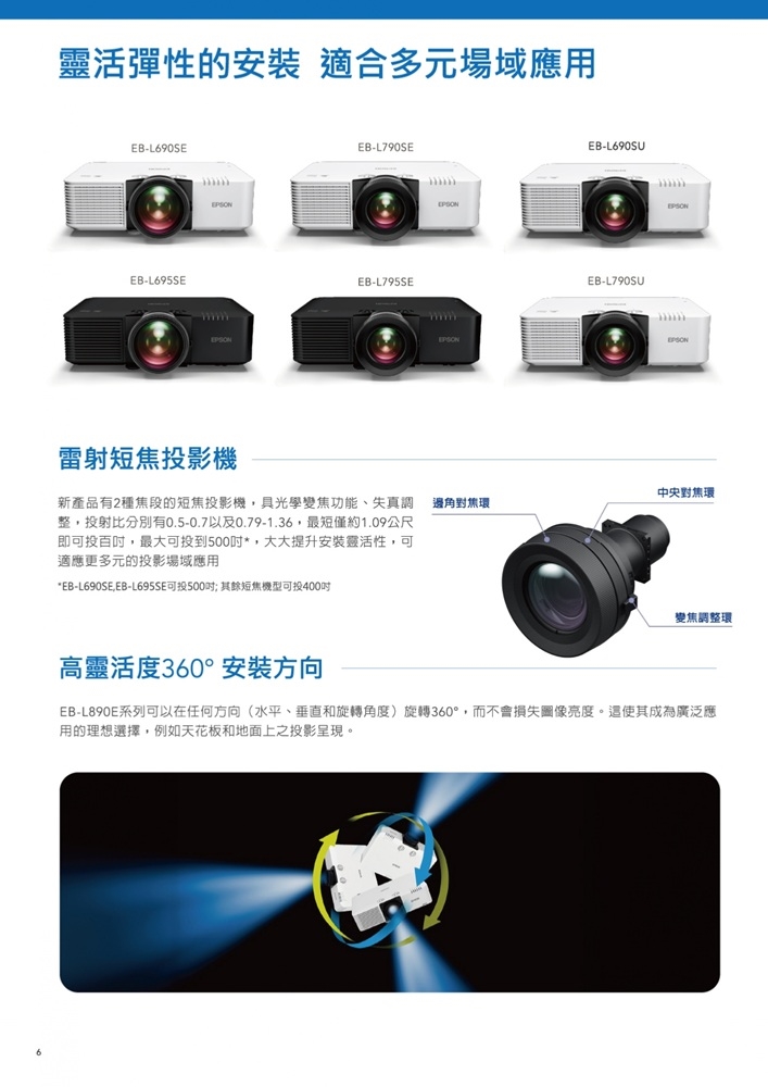 雷射光源短距投影,適合多元場域應用。高彩色亮度呈現細膩影像,真實色彩還原