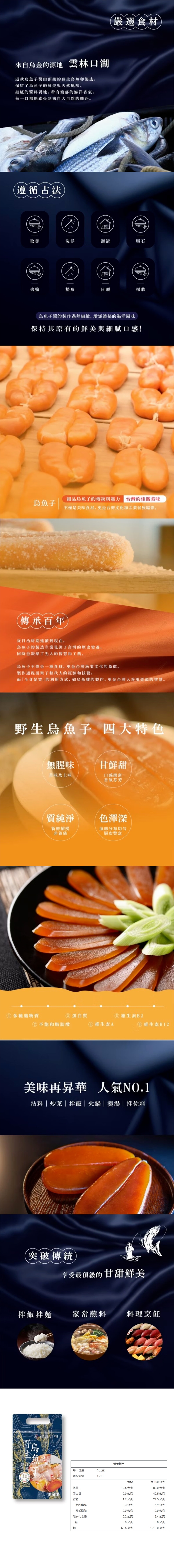 內容物成分(如含有豬、牛成分請加註國別):烏魚子、食鹽