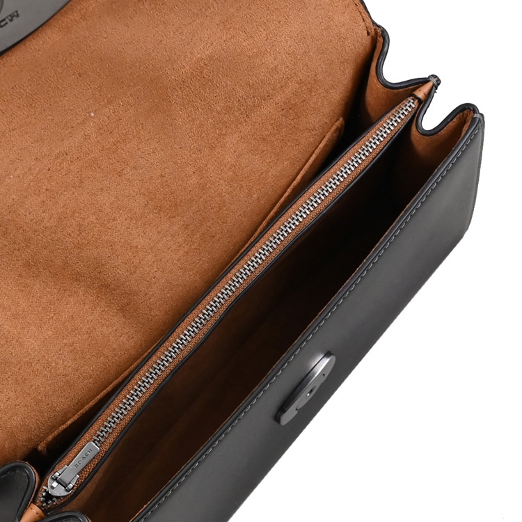 COACH 專櫃商品,這款Eliza系列兩用包,採用質感滑面皮革製作,飾有烙印馬車LOGO,翻蓋開口,內2隔層+1拉鍊袋+1貼袋供收納,內可放長夾、手機或鑰匙等隨身物品,斜背帶可拆式,可斜背或側背也可單獨手提攜帶,無論外出或其他場合皆實用。