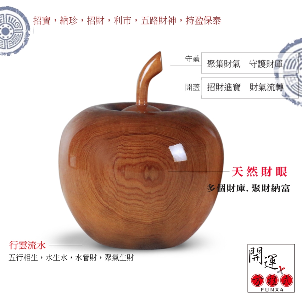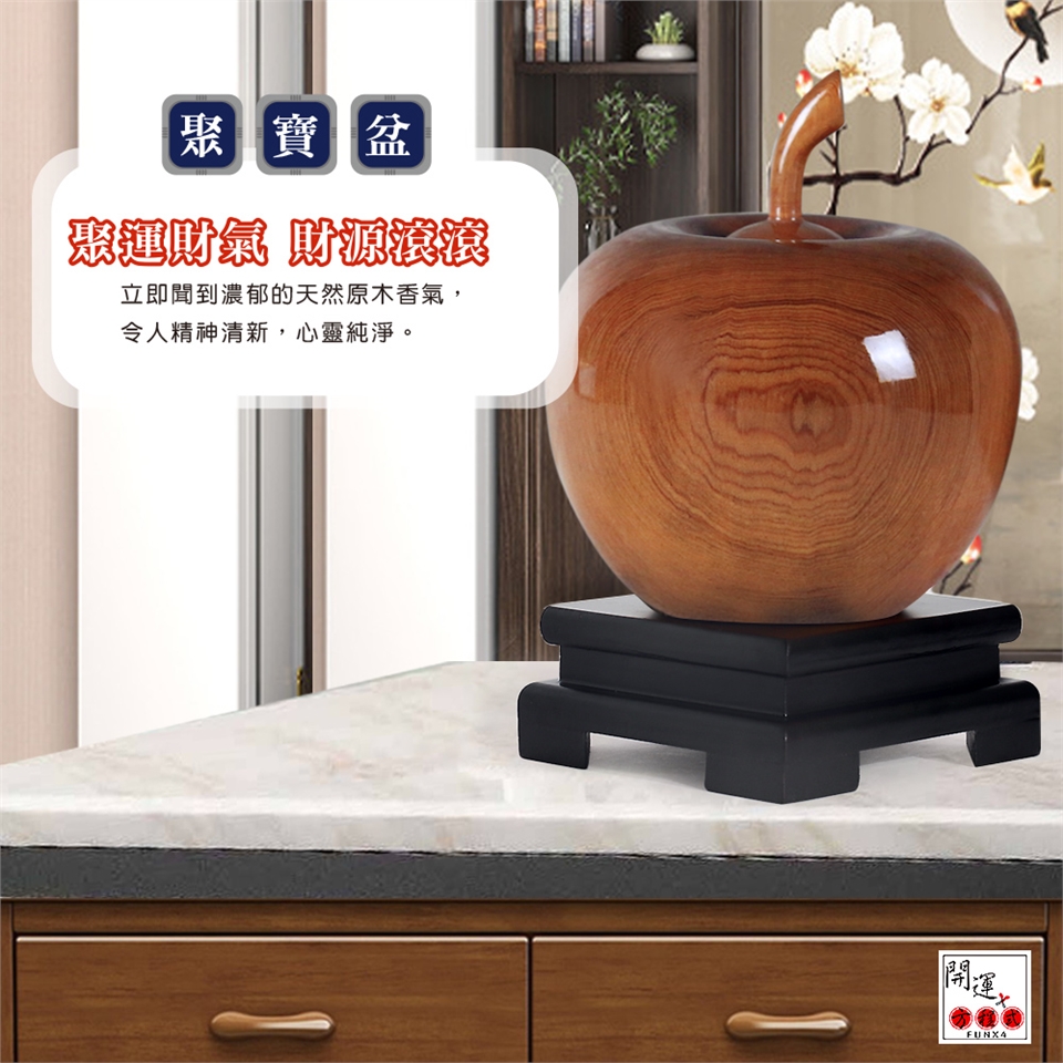 臺灣檜木聚寶瓶(又稱財瓶)是世界一級珍貴木材所製,可長久保存、車工細膩、造型優美,打開瓶蓋聞香,大自然芬多精的味道大口吸滿,彷佛沉浸在森林中。