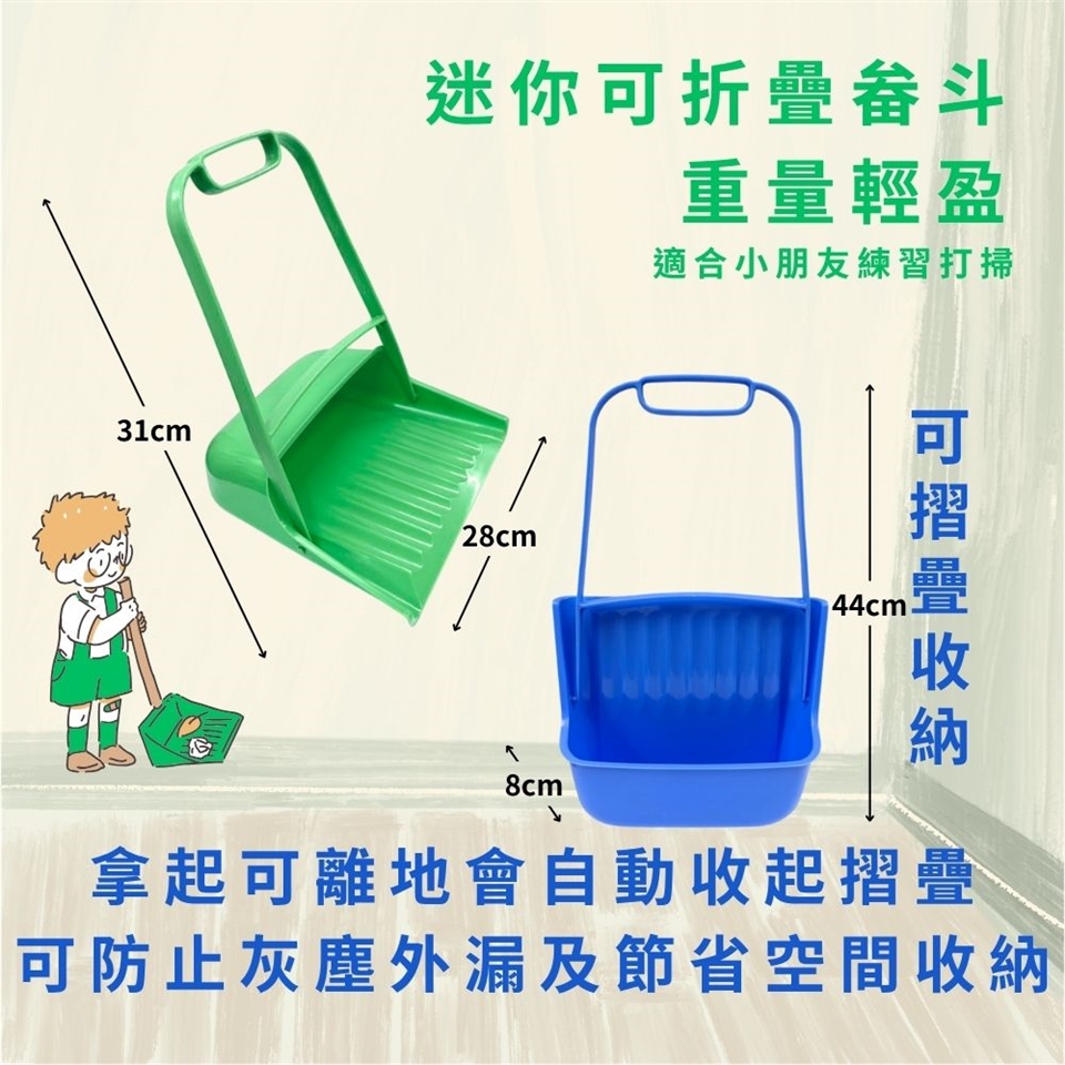 摺疊收納:畚斗可摺疊,方便收納且不佔空間