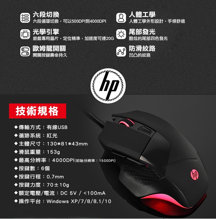 ◆6段DPI調整迴圈光學變色切換,最高解析度:4000DPI