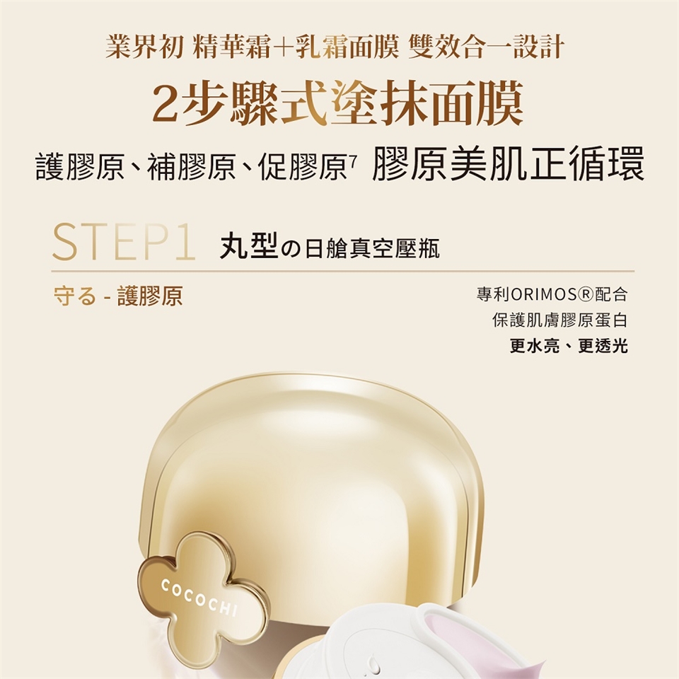 清潔臉部肌膚後,打開本產品旋蓋,按壓日形真空區約3~4次,取適量精華霜點塗於臉部欲重點呵護之部位。接續打開月形面膜區蓋子,取約一顆櫻桃大小的乳霜面膜,均勻塗抹於臉部,厚度需遮蓋肌膚並避開眼周和唇部。靜敷10~15分鐘後,再以常溫清水洗淨(無需再使用清潔產品),即可進行後續保養步驟。