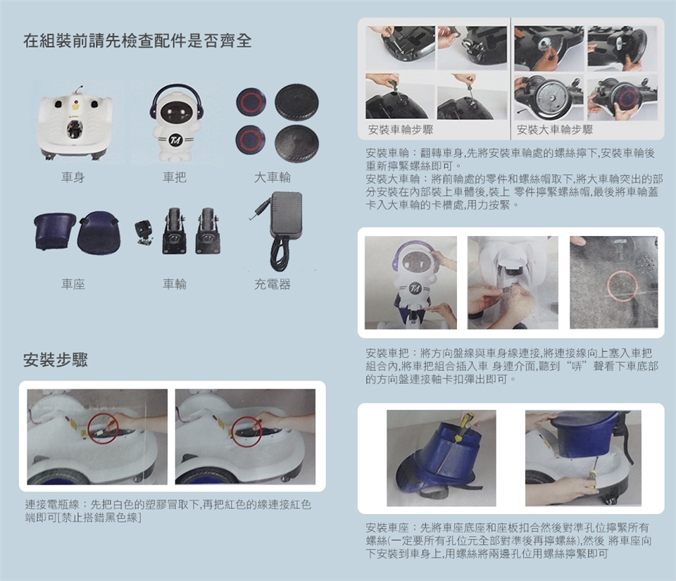 1、請在平整良好的地面行駛,請不要在光滑地面(如大理石、地磚)等表面使用。