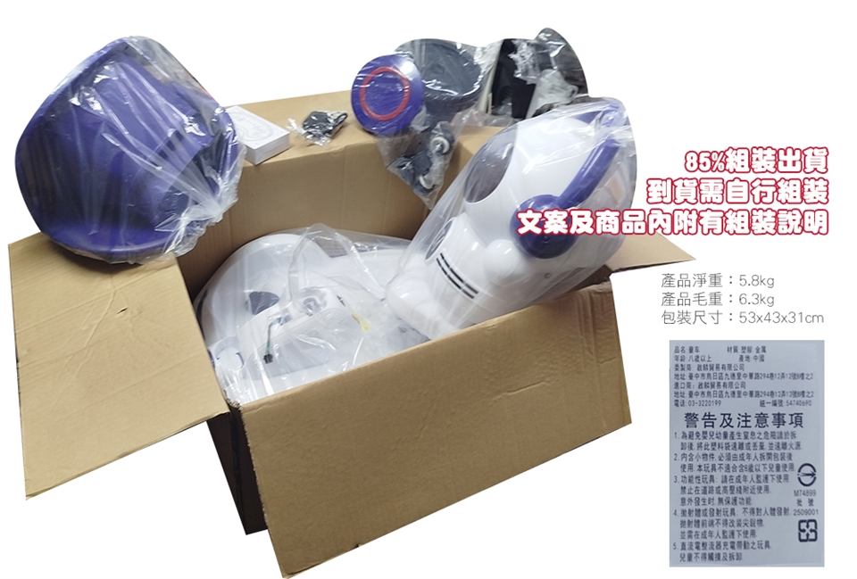 ● 85%組裝出貨,到貨需自行組裝,文案及商品內附有組裝說明。