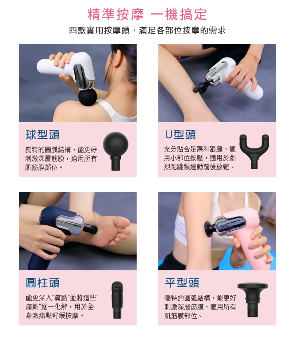 ◆4款按摩頭,舒緩各部位肌肉