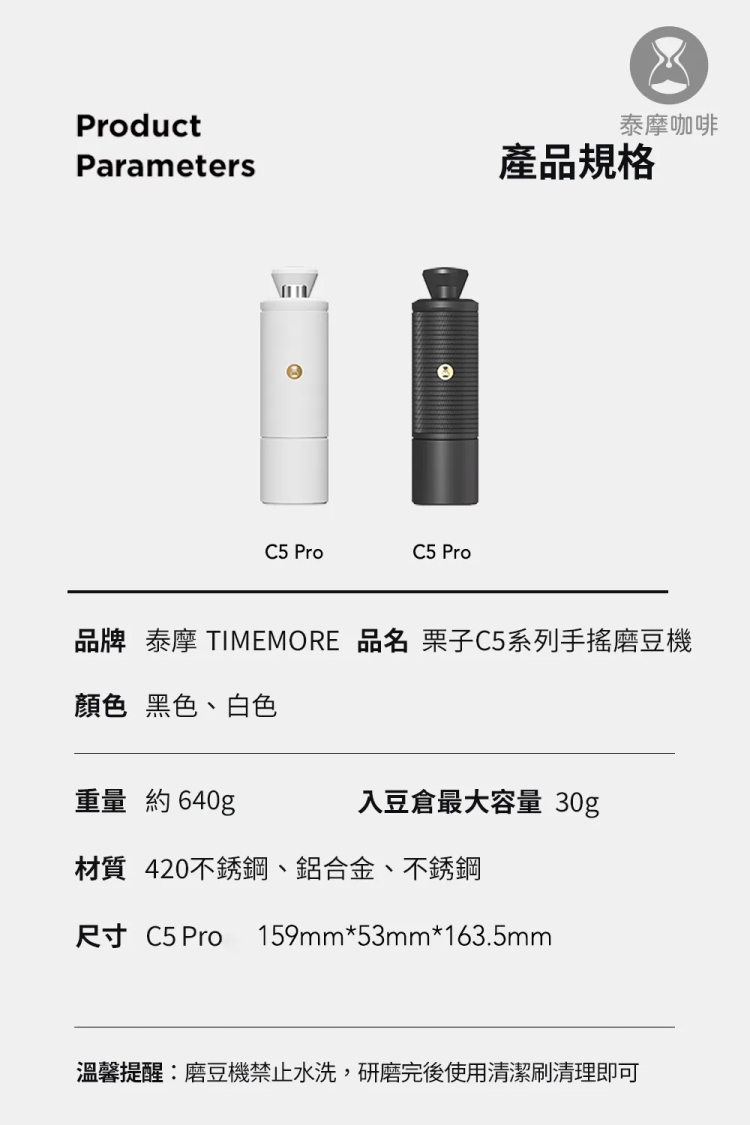- 磨豆機禁止水洗,使用完後請用清潔刷清理即可。