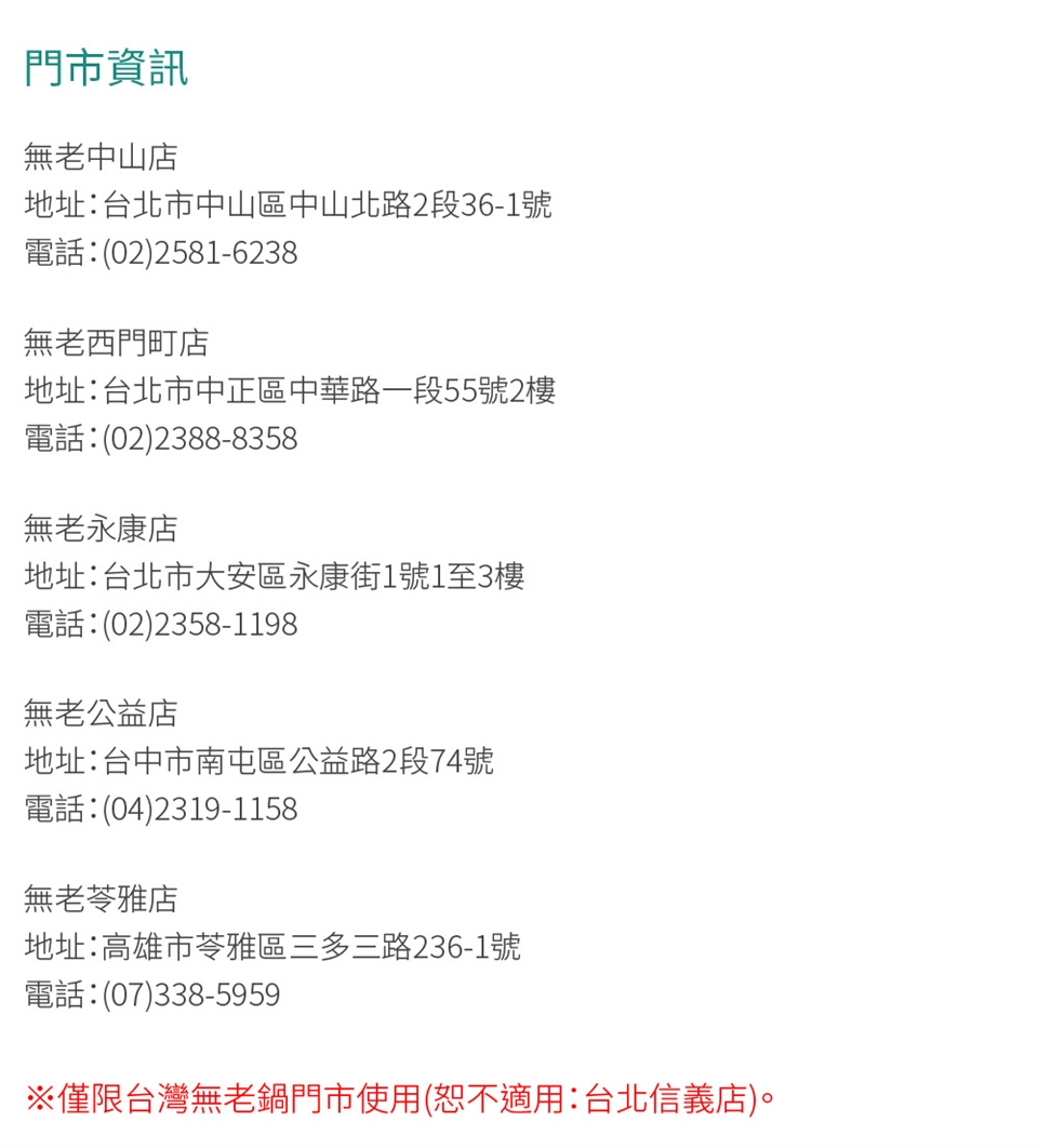 【使用注意事項】 ◎不得與其他優惠合併使用,恕無法兌換現金及找零 ◎請持手機簡訊或e-mail兌換券到店使用 ◎兌換券逾期未使用,可辦理退費 以上規範如與兌換券不同,則依兌換券為準