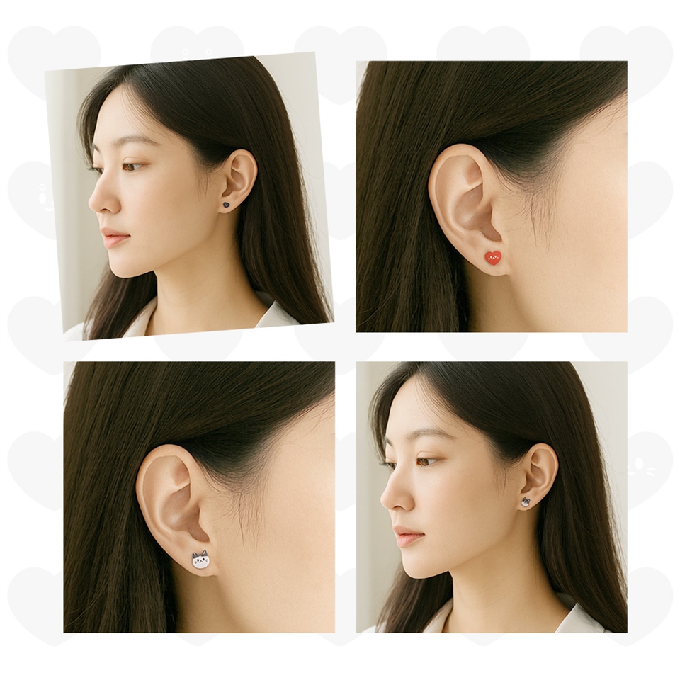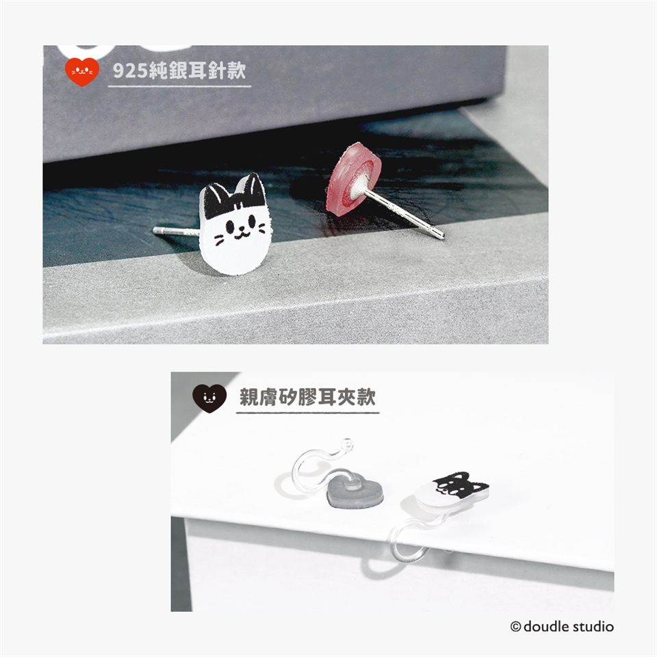 材質:塑片,925純銀耳針;塑片,親膚矽膠耳夾
