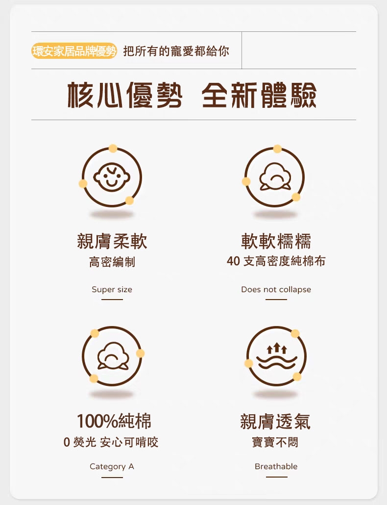 ✨ 40支精梳綿質感:採用高密度的40支線純棉材質,提供極致的柔軟與舒適,讓寶寶在夢鄉中也能享受如雲朵般的輕柔觸感。