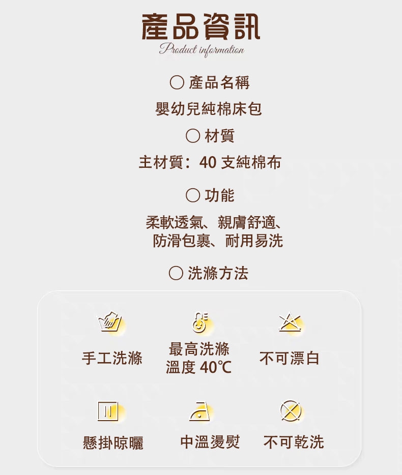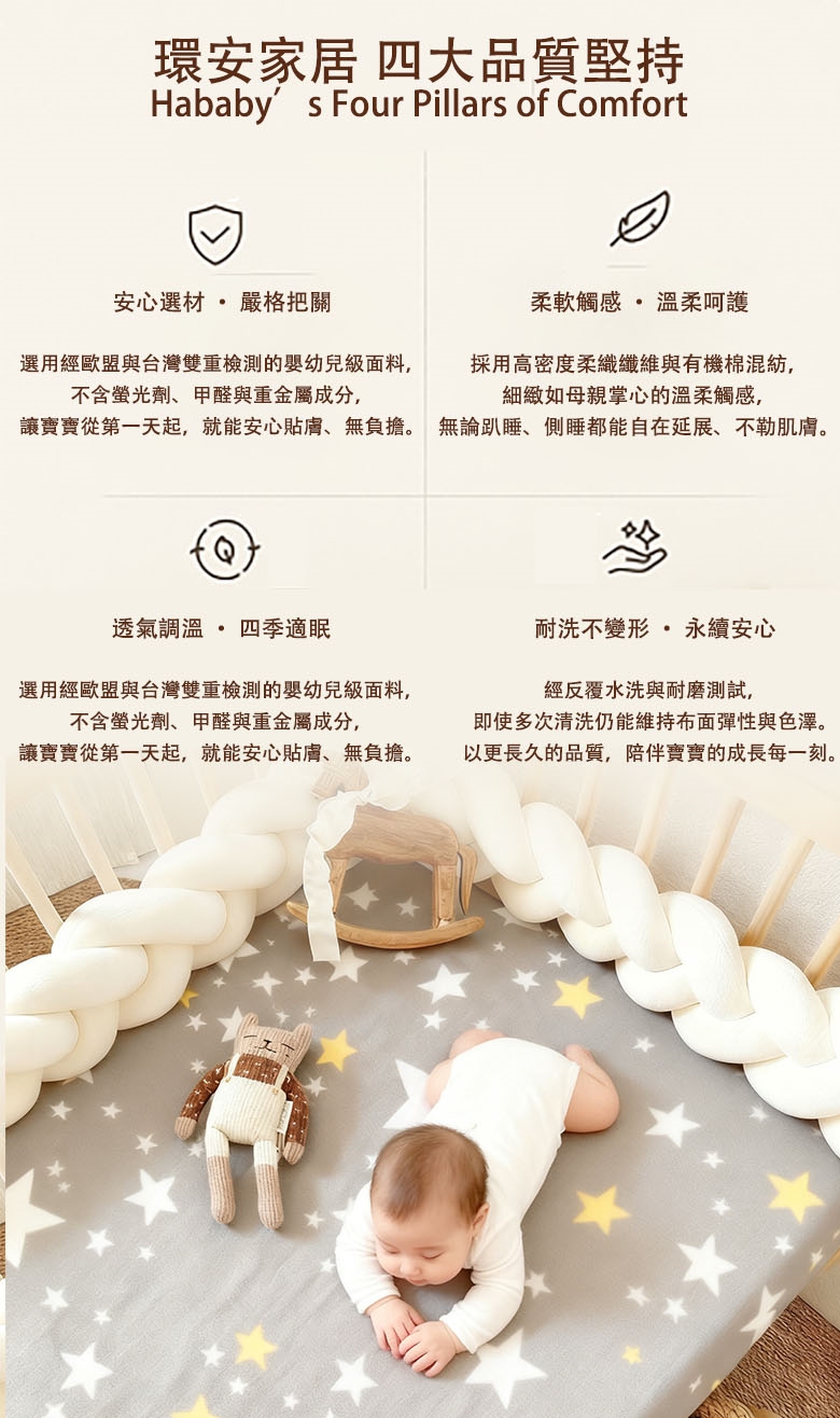 寶寶的舒適安睡,從我們的嬰兒床包開始。我們自豪地推出這款100%台灣製造的嬰兒床包,專為給您的小寶貝提供最優質的睡眠環境。