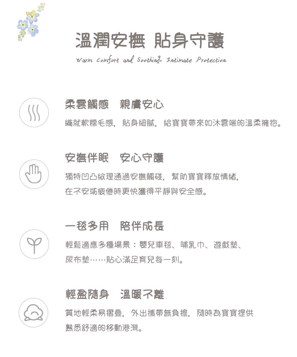 商品名稱:魔豆毯-尺寸130×100(寶寶毯、幼兒嬰兒毯、安撫毯)