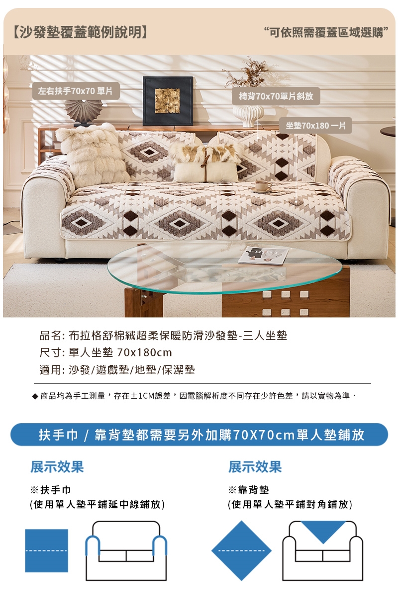 ※溫馨提醒:以下商品僅含"三人坐墊一條" (扶手巾/靠背墊/靠墊均為拍照道具搭配)