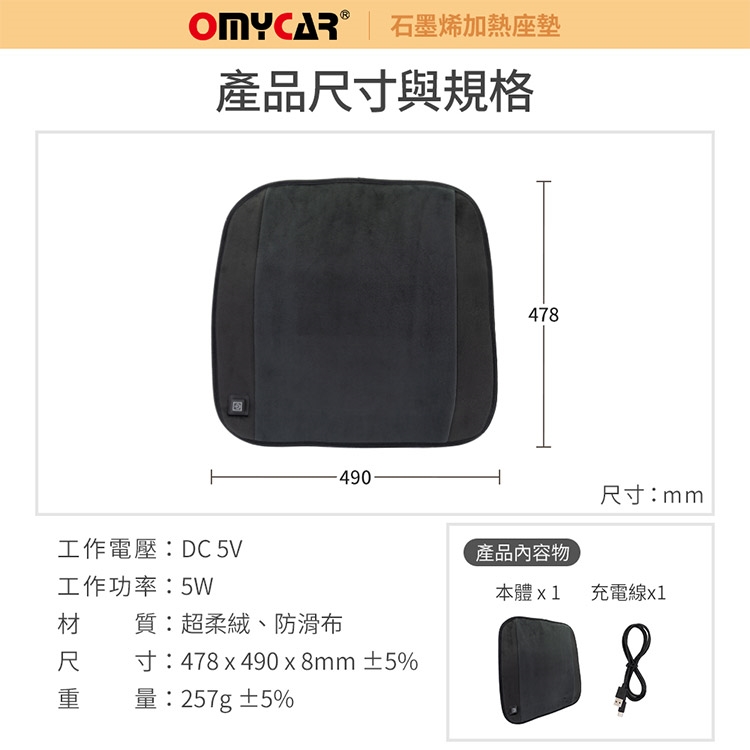 商品品名:【OMyCar】石墨烯加熱座墊