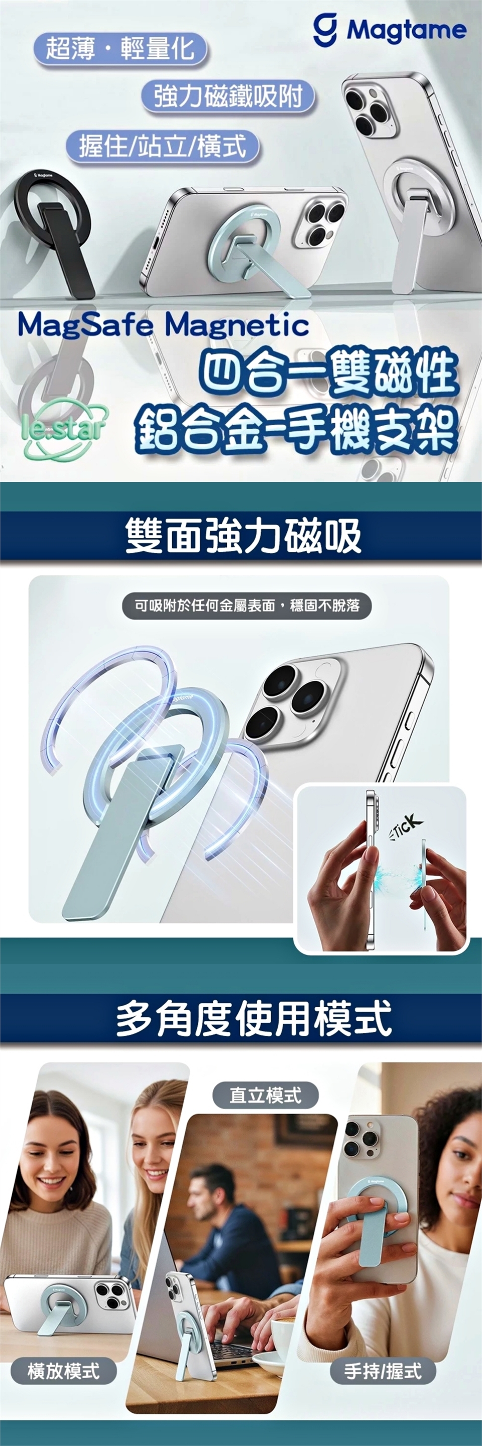 品名:Magtame MagSafe Magnetic 四合一雙磁性鋁合金手機支架