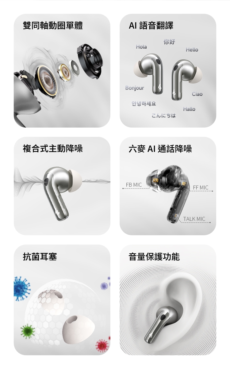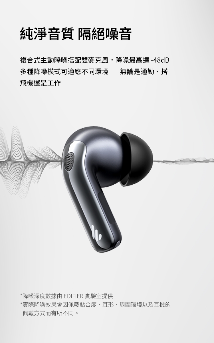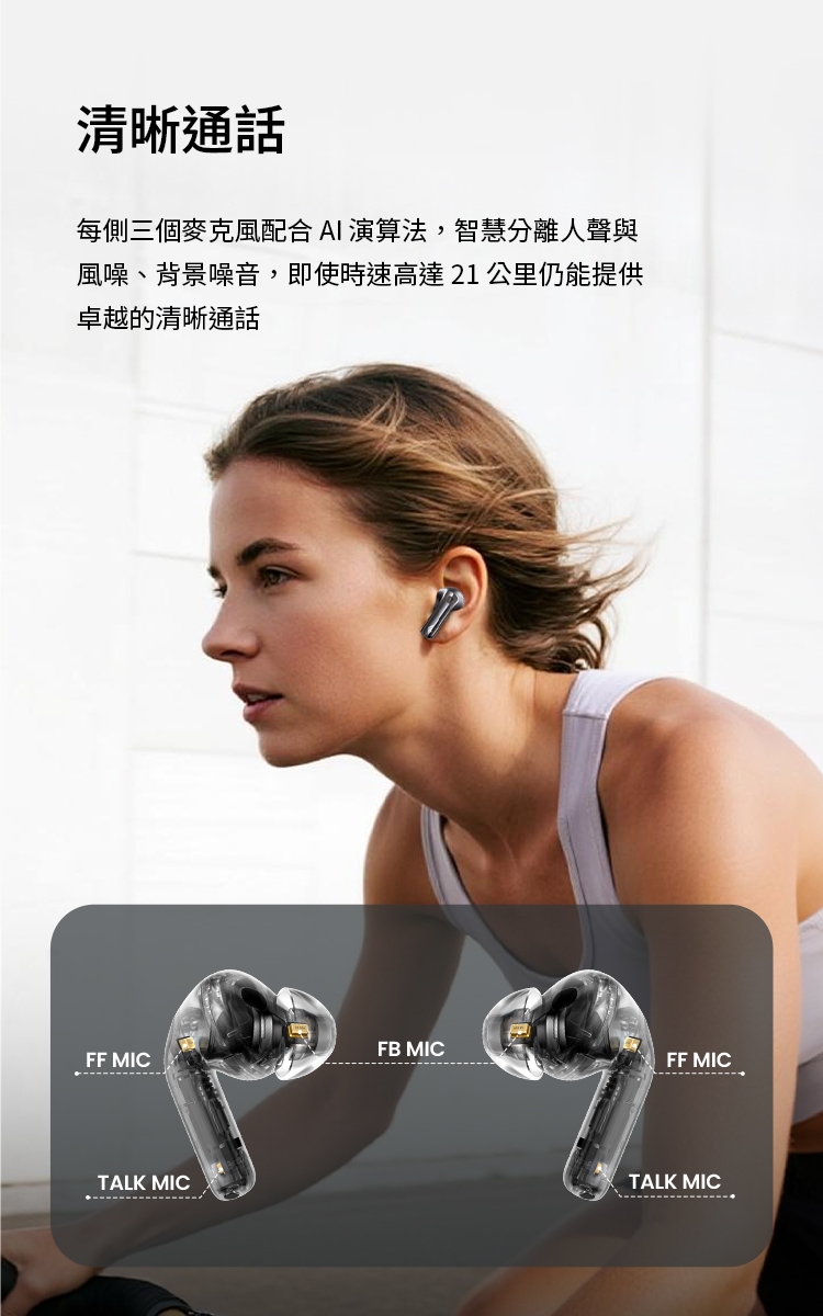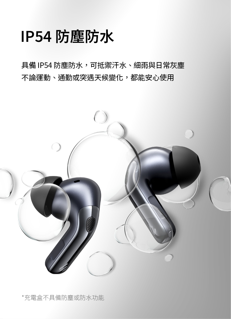 A:具備 -48dB 複合式主動降噪與 6 麥克風 AI 降噪,即使在嘈雜環境也能保持清晰通話。