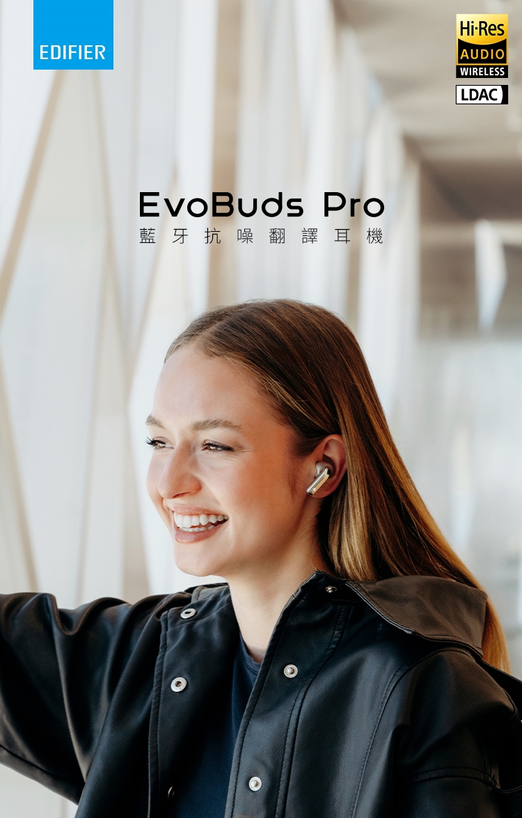 EvoBuds Pro 是一款搭載 AI 語音翻譯、同軸雙驅單體與複合式主動降噪的高階真無線耳機,專為商務出差、跨國旅行與高品質音樂欣賞使用者設計,提供即時翻譯、沉浸音質、清晰通話與長效續航。